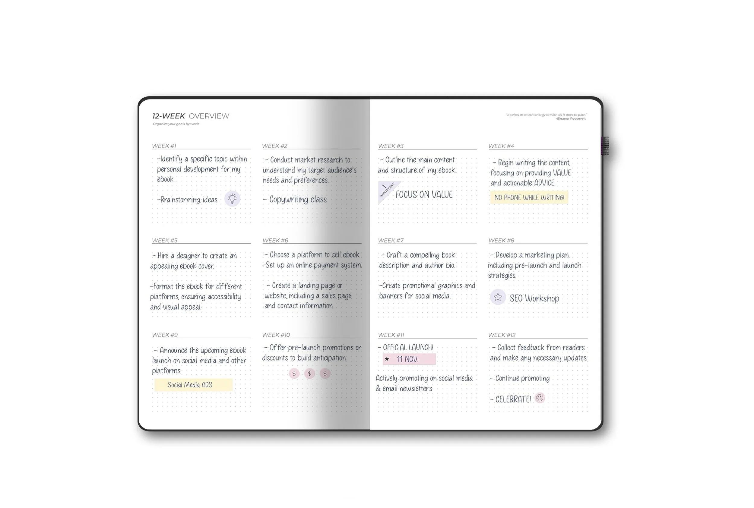 TThe 12WeekFocus planner is for anyone ready to level up their productivity and achieve their goals with focus and intention. Whether you’re a busy professional, a student juggling deadlines, a creative chasing your next big idea, or just someone who loves to plan and stay organized, this planner is your perfect companion. It’s designed to help you prioritize, stay on track, and make the most out of every week!