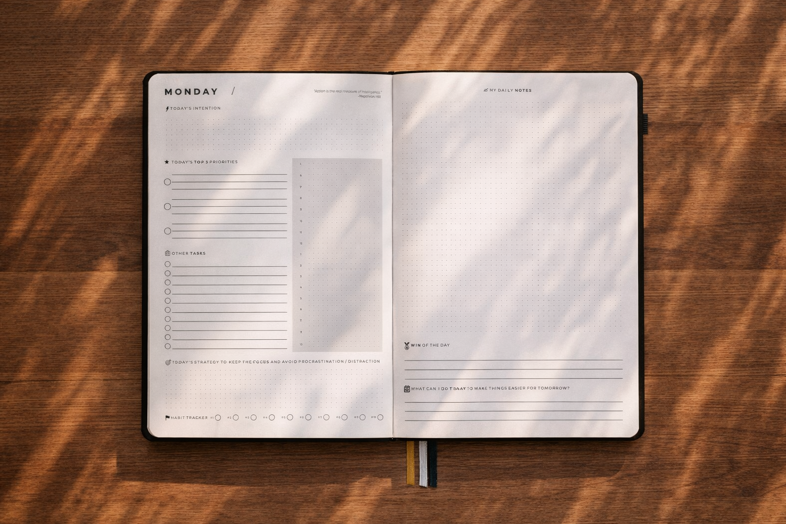 Make your planner the first thing you check in the morning—before your phone, email, or social media. Prioritize yourself and your goals before letting external noise set your mood for the day. This keeps your days intentional instead of reactive.